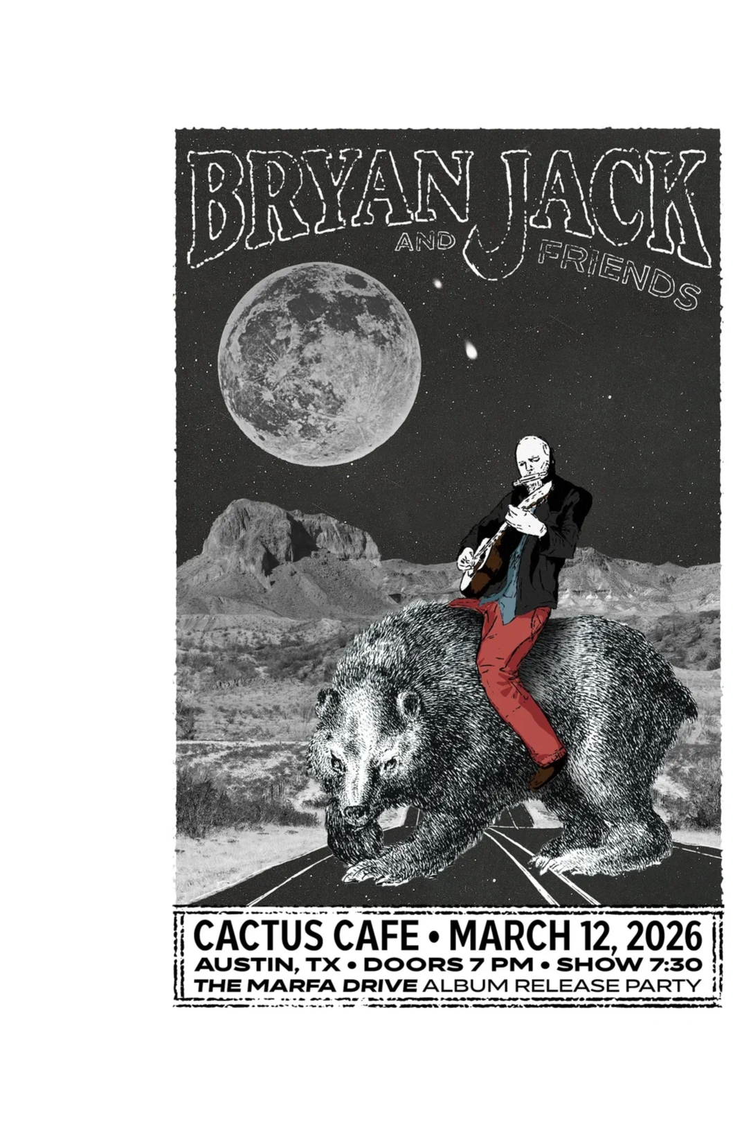 Bryan Jack & Friends celebrate the release of his freshman album "The Marfa Drive" at the best listening room in Texas, The Cactus Cafe.